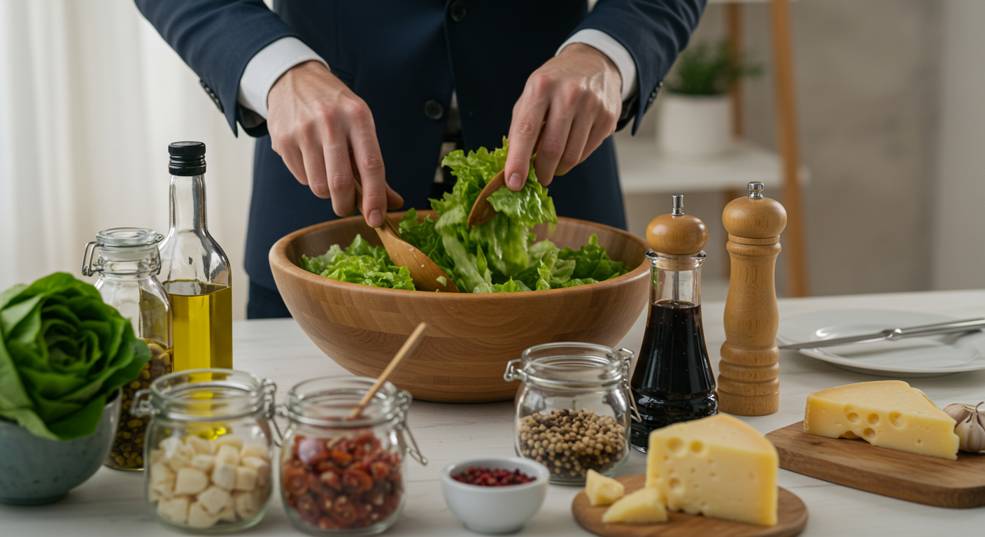 Menu Description: Hearts of romaine, crouton, white anchovy, parmesan